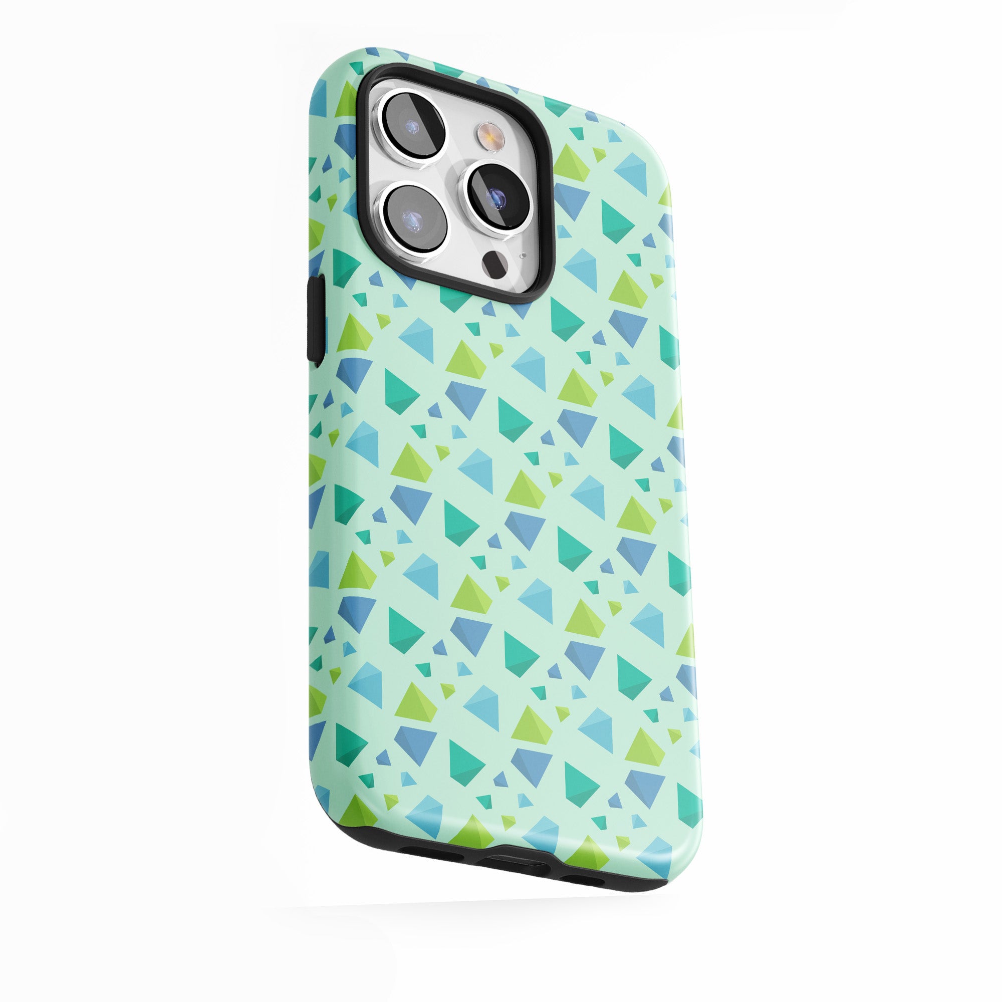 Scattered aqua triangle shapes.