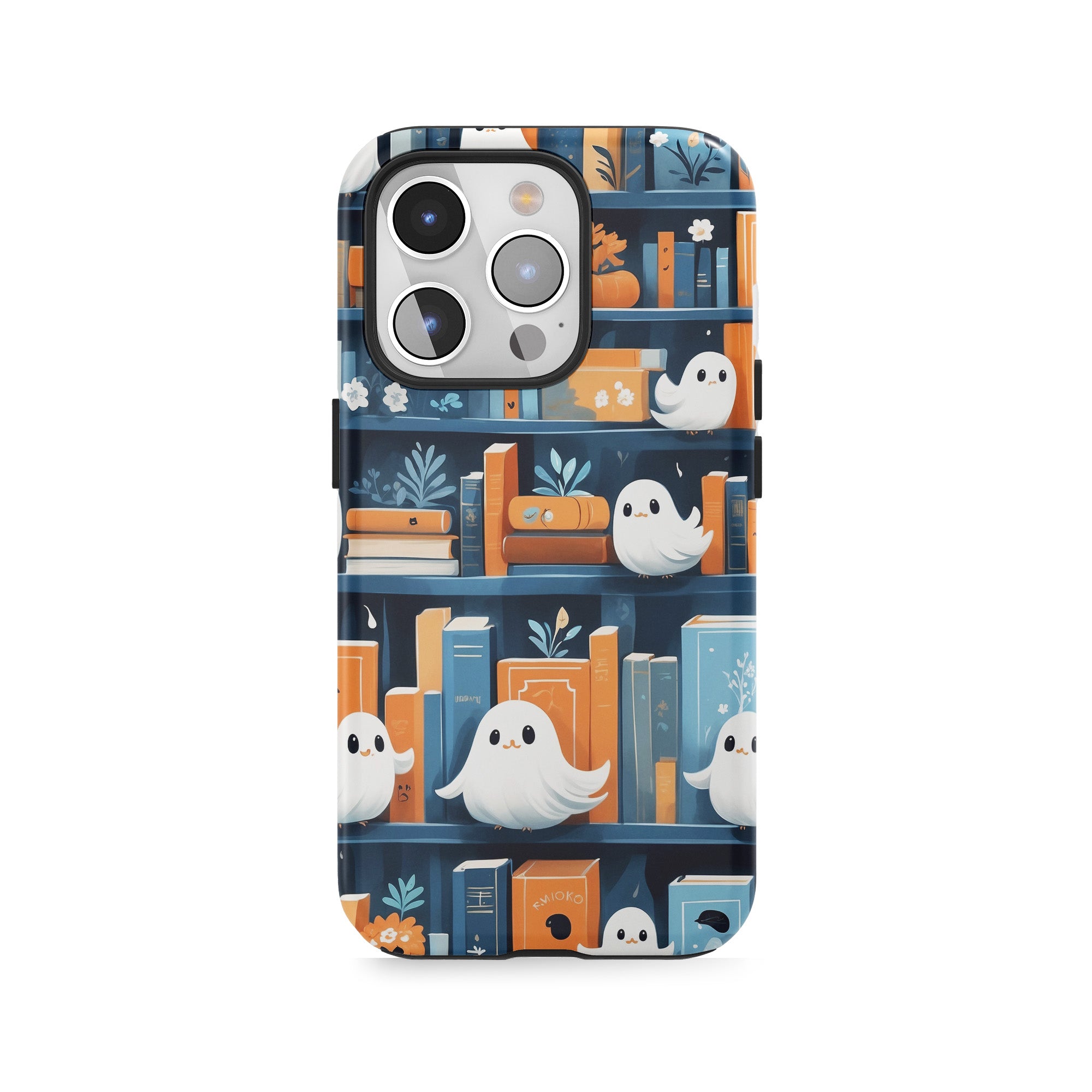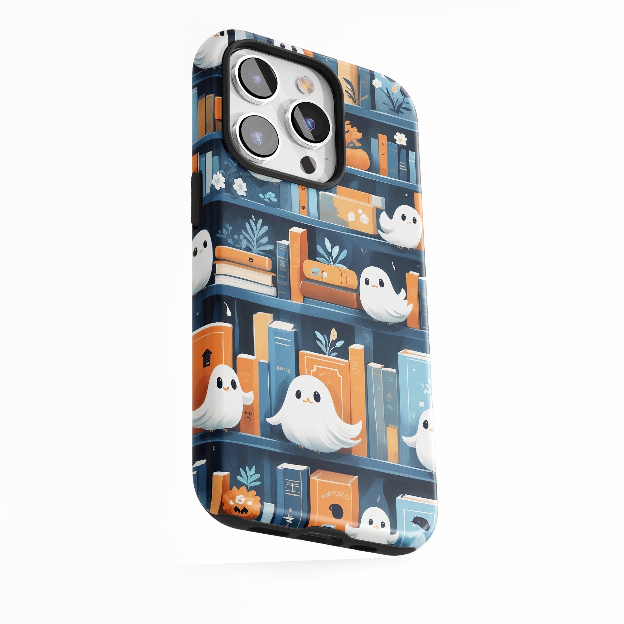 Ghosts peeking between books.