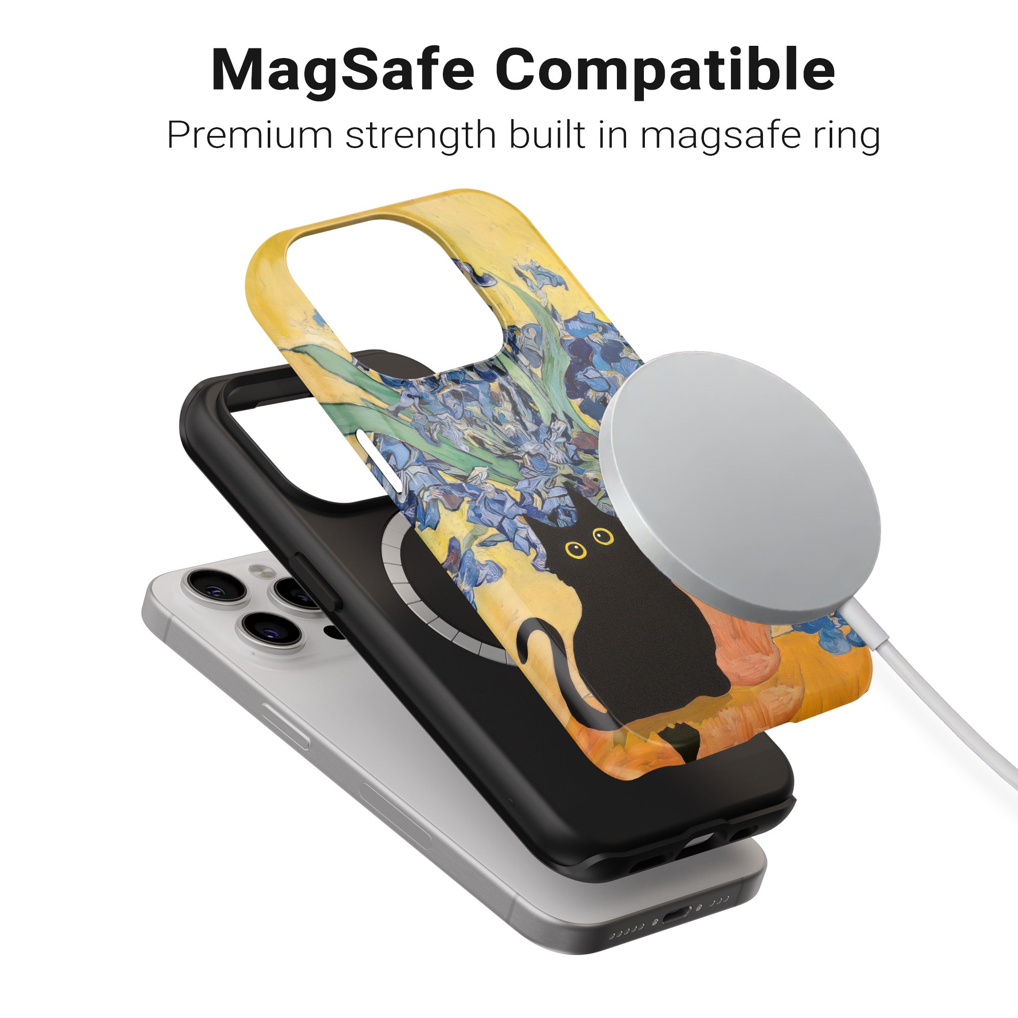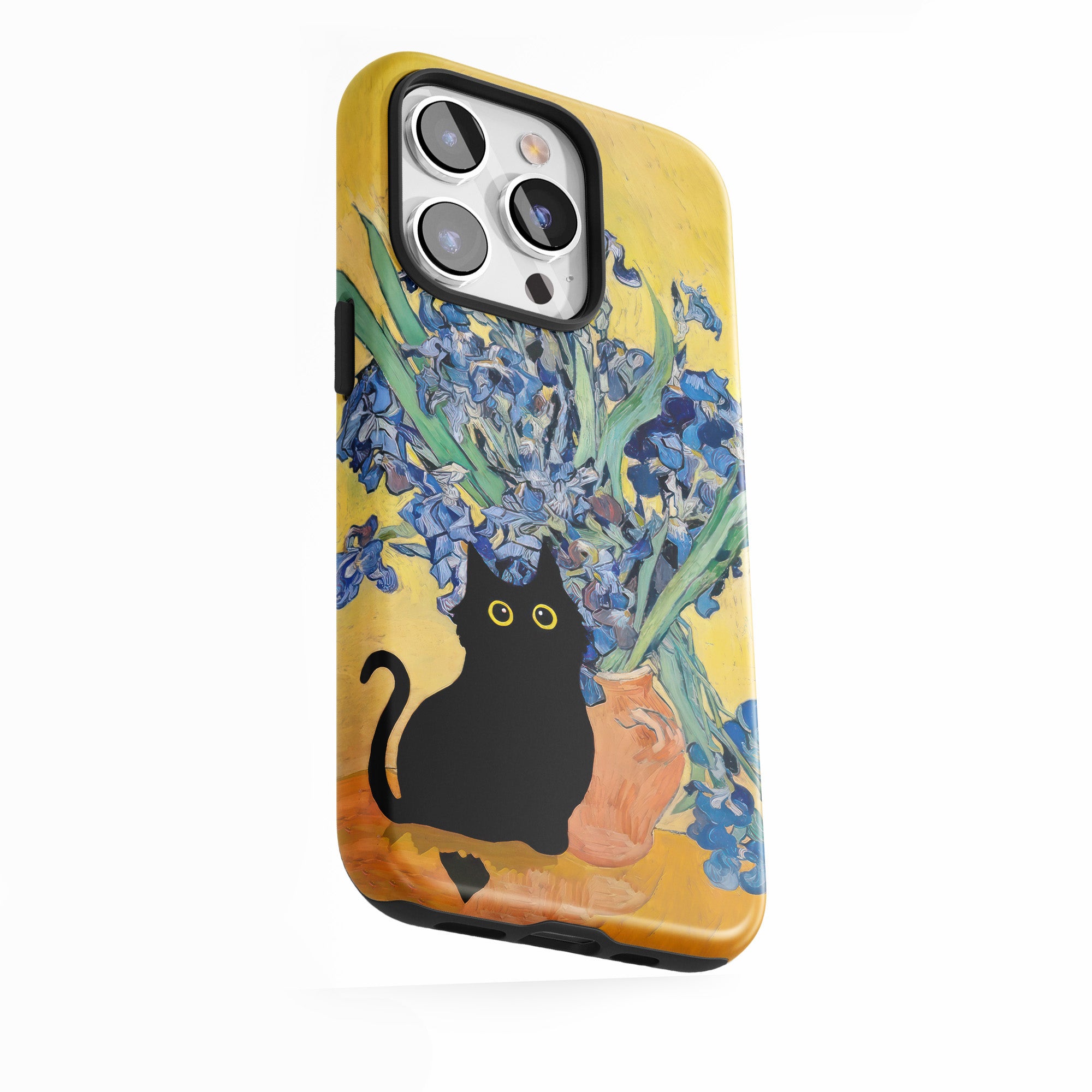 Cat paired with iris flowers.