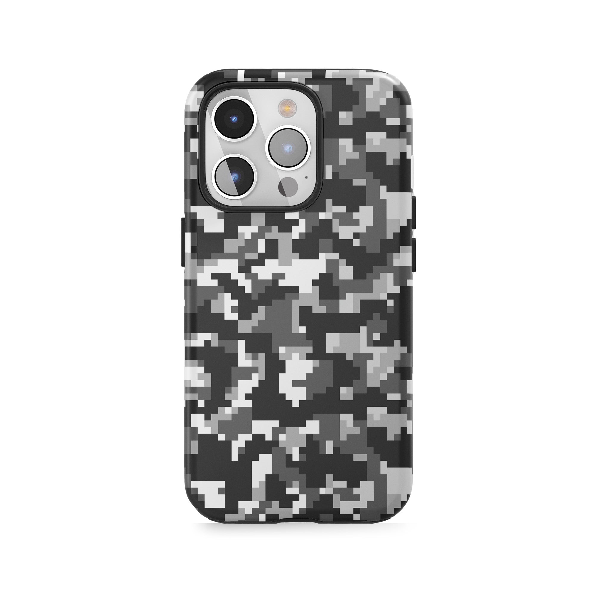 Pixelated snowy camouflage.